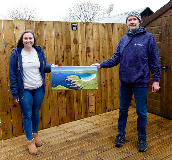The fantastic canvas print of Scousburgh Sands was won by Emma Murray from Scalloway. Rory presented the prize to her in person, you can see how delighted she is! We run a competiton every year during August / September, so check back in 2021 to see what you have to find and what the prize will be!